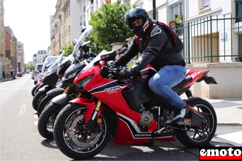Ayoub : J'ai un CBR 1000 RR 2017, j'ai choisi cette moto parce que c'est une CBR que je voulais, pas une autre. En 1000. Je fais tout avec cette moto, je me balade le week-end, je vais au boulot avec et je fais de la piste. C'est agréable, on est pas trop sur les bracelets donc ça va. C'est pas comme sur certaines où on est vraiment plié. Je fais plus de 20000 kilomètres par an, c'est mon véhicule principal, je fais tout avec. Après je travaille dans l'automobile donc quand j'ai besoin d'une voiture je me sers au boulot donc j'ai pas besoin d'acheter une voiture, c'est l'avantage oui. Ca fait 4 ans que je fais de la moto, il y a eu du roadster pour débuter. Que des Honda d'ailleurs. J'ai commencé par CB 6 1/2, après j'ai eu un VFR 800, j'ai eu un Hornet, et après j'ai eu là le CBR. A chaque fois je les fais reprendre ici sauf la Hornet que j'avais vendue à côté mais sinon je suis fidèle à National Moto. Même pour les accessoires, tout ce qui est casques et conneries, ouais. Pas tout non plus mais une bonne partie oui. Je roule avec les potes, j'ai un groupe de motos, on part le week-end surtout le Vexin (ndlr : région entre Paris et la Normandie), parce que Chevreuse il y a vraiment trop de monde.