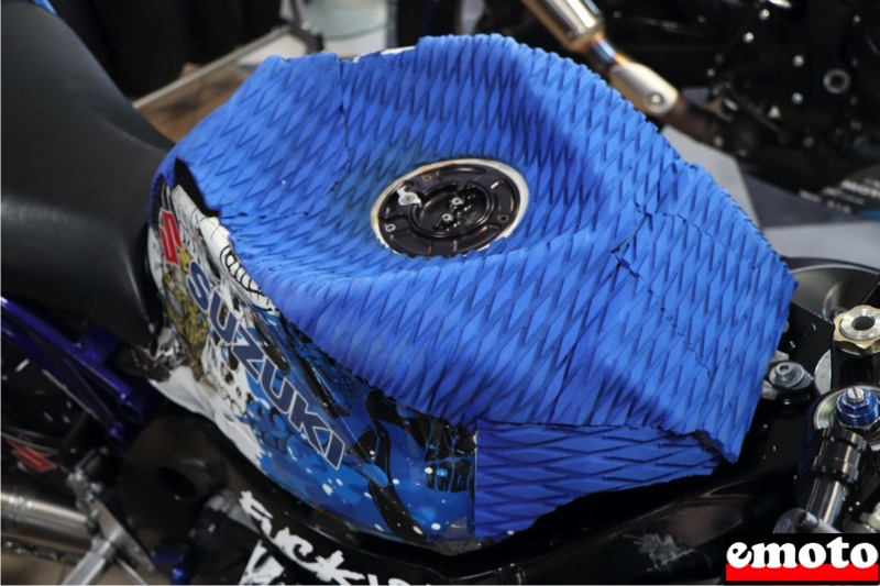 Suzuki GSXR 750 pour le drift par Motos DarioBras oscillant rallongé et montage de l'étrierDéco du réservoir de la Gex 750