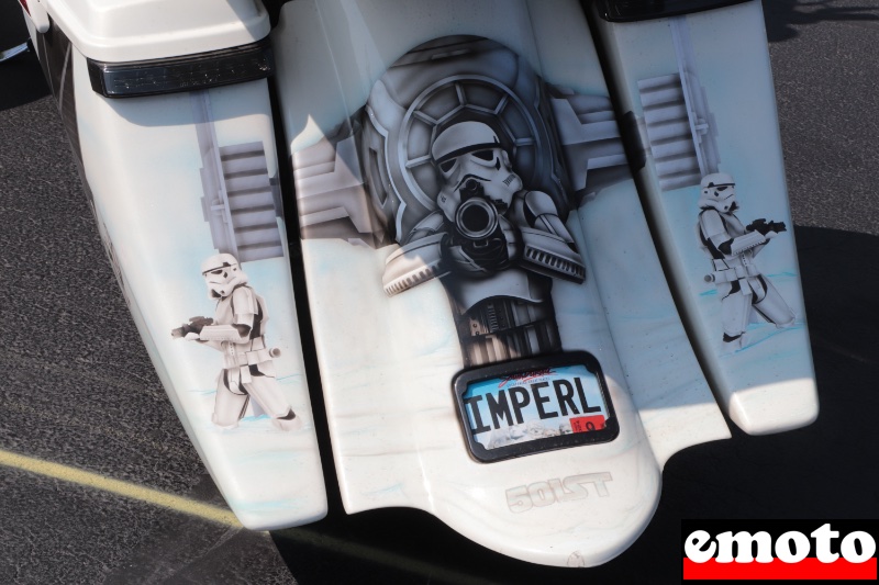 Sur l'emplacement du musée, on trouve une foule de choses à voir à commencer par les motos qui viennent d'un peu partout. Même si la côte Est est la plus représentée, on a pu voir quelques bikers venus de la Californie par la route. On trouve un peu tout ce qu'on connait en France sur une telle manifestation mais c'est bien plus grand et puis c'est très dépaysant puisqu'ici les motards roulent sans casque alors on est tout de suite dans un autre univers avec la plupart des clichés américains qu'on peut avoir. Ce sont les mêmes ingrédients mais pas la même dimension ni le même esprit. Et puis on peut finir la soirée avec les concerts proposés sur l'espace du musée qui est le plus complet et diversifié des 3.