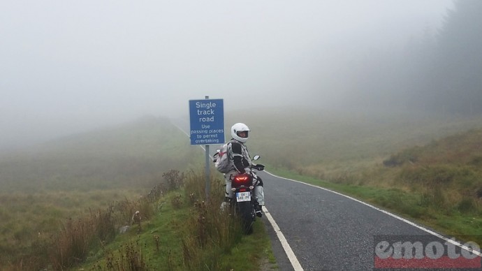 6h du matin, le réveil est un peu douloureux : le petit déjeuner n'est que très frugal puisqu'on doit faire vite et qu'un plus consistant nous attend quelques heures de roulage plus loin. Il fait encore nuit noire quand on prend la route, un petit 6~7°C et un épais brouillard qui colle à la visière. Ca caille, et la route qui mène à Killchoan est sinueuse, vallonnée et par endroit largement couverte de gravillons, ou de bouses de vache fraiches, pour le moins glissantes ! Ce n'est que le début des 220 kilomètres qui nous attendent.