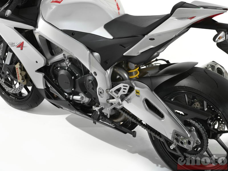 Affichée 5000€ de moins que la RSV4 Factory, elle perd certains éléments conçus pour un gain de poids et d'efficacité sur piste