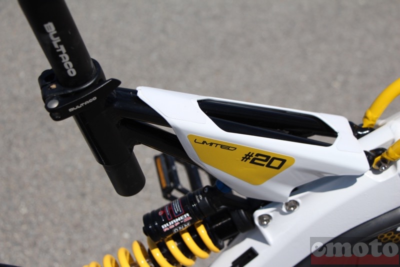 Le débattement des suspensions encaisse tout, le freinage est très efficace même d'un doigt en TT et le moteur agréable pour une bonne balade. Ce Brinco est très qualitatif mais n'est pas un véhicule radical insiste Bultaco. Force est de constater que c'est vrai surtout pour le moteur qui laisse sur notre faim. Nous n'avons malheureusement pas pu juger de l'autonomie offert par cette batterie amovible annoncée à 30 km en 100% électrique. Bultaco annonce 3 heures de charge sur un chargeur externe. Le Bultaco Brinco fleure bon la qualité de fabrication, d'assemblage et d'équipement. On est face à un très beau produit qui est très bien placé face à ses concurrents en tarif (Stealth par exemple) avec un premier prix à 4800 euros. La version homologuée disponible à la rentrée 2015 sera proposée à 5500 euros. L'entretien est proche de celui d'un VTT de descente. Les plaquettes de frein devraient s'user très rapidement au regard du poids de l'engin et de l'absence de frein moteur. Le nôtre en photos est dans une finition Bultaco is Back Limited Edition à 4800 euros.