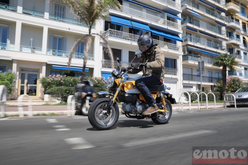 Bilan essai Honda Monkey 125 Que conclure ? Objectivement on n'est en présence d'une vraie moto, petite certes, mais qui n'a rien d'un jouet malgré sa bonne bouille. A défaut d'être nerveux, c'est stable, facile, maniable et sécurisant avec l'ABS. Le Monkey donne envie de flâner en bord de mer, de s'amuser avec lui en toute insouciance. C'est un copain pour les bons moments, il ne faut pas le prendre autrement. La sympathie et l'euphorie sont deux traits de caractère qui accompagnent le pilote. Avec son Monkey, Honda signe une réussite néo-rétro sans aucune faute de goût esthétique et dynamique. Bonnes vacances !