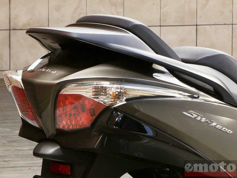 L'équipement est complet et le tableau de bord digne d'une auto avec ses 5 grands cadrans parfaitement lisibles. A gauche on trouve la jauge de carburant et la vitesse, au centre l'ordinateur de bord, et à droite le compte-tours et la température moteur. L'ordinateur de bord affiche simultanément, la consommation instantanée, le totalisateur ou les compteurs journaliers et en dessous, l'heure. Les rangements sont importants avec un coffre éclairé, grand et profond où on peut ranger deux casques intégraux sans problème. Sa forme assez régulière facilite le rangement de diverses affaires lorsque les casques n'y sont pas. On a deux vide-poches dans le tablier. Celui de gauche plus large et plus profond, ferme à clé. Seul point noir à ce maxi scooter, le béquet arrière parfaitement lisse et sans attache ne pourra pas faire office de porte-paquet. Il faudra nécessairement opter pour un accessoire Honda pour installer un top case à l'arrière du SW-T 600 !