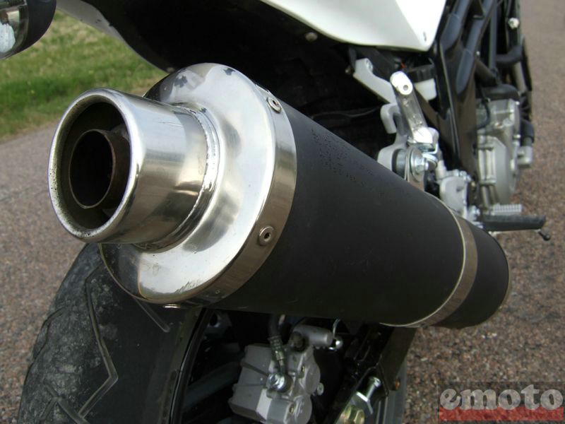 Le bicylindre en V de 647cm3 adopte l'injection pour passer les normes et afficher une puissance de 82cv à 9250tr/min (un kit 34cv est disponible pour les jeunes permis). Le couple maximal est de 6.2mkg à 7500tr/min, un régime moteur à partir duquel le bicylindre s'exprime d'ailleurs le mieux. Avec l'injection, il accepte de descendre bas dans les tours sans cogner, mais, étonnement pour un bicylindre en V, il n'est pas très démonstratif sous les 7000tr/min. Cette caractéristique devrait changer via un nouveau mapping pour les modèles de série. La sonorité émise par l'échappement n'est pas sans rappeler quelques modèles plus anciens de bicylindres voire gros monocylindres refroidis par air . Même si le rapport de démultiplication final est sans doute un peu long, les changements de rapports se font facilement avec une boite de vitesses qui se manie sans encombre.