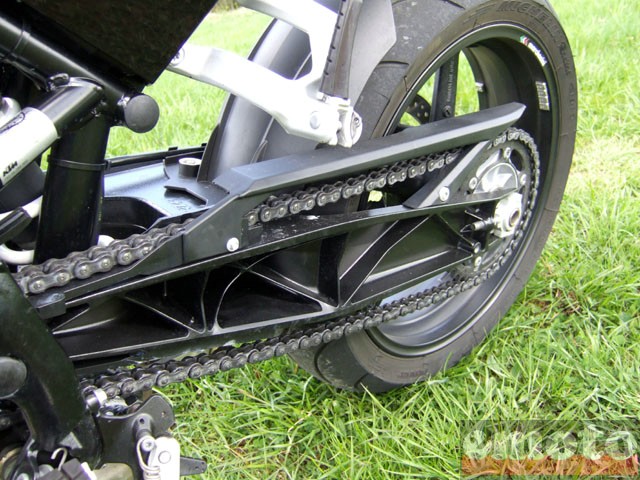 De son côté le freinage respecte aussi toutes ses promesses : Dosable, progressif mais somme toute efficace. Le simple disque à l'avant pincé par son étrier radial, assure sa part de travail et l'arrière se révèle très puissant. KTM a également équipé la Duke d'un embrayage APTC antidribbling qui stabilise la roue arrière en cas de rétrogradage violent.