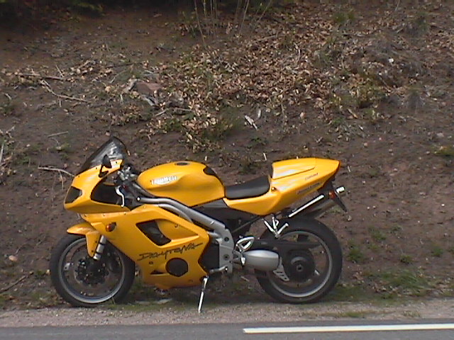 Les accélérations de la Triumph Daytona 955i sont franches, les freinages puissants et les trajectoires tendues grâce à une bonne partie cycle. Les routes d'Alsace permettent de profiter pleinement de cette machine à l'aise sur nos routes.