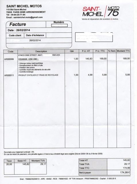 174.99€ pour juste une vidange. je joint le scan de la facture