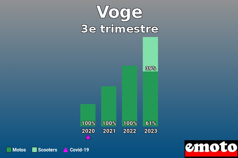 Volumes d'immatriculations Voge pour chacun des 12 derniers trimestres écoulés.